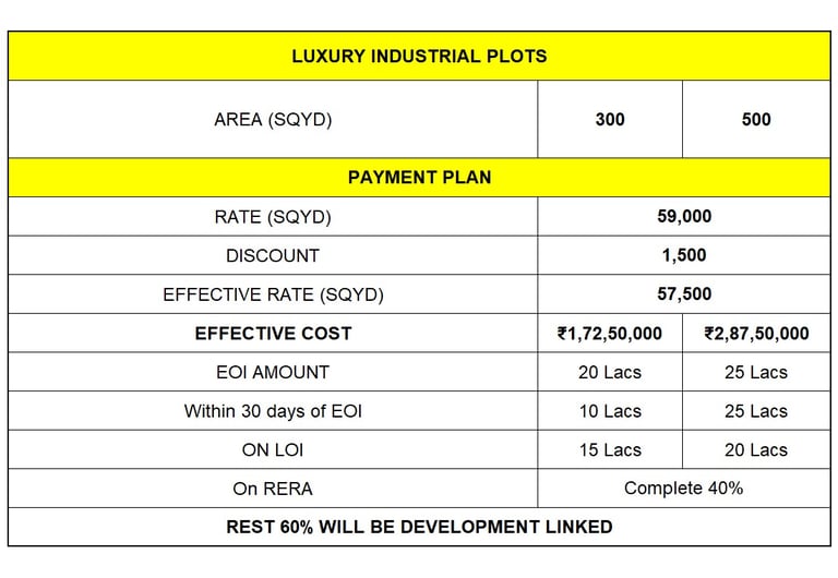💰 Price: ₹59,000 per Sq. Yd (Special offer ₹55,000/Sq. Yd for early payers)